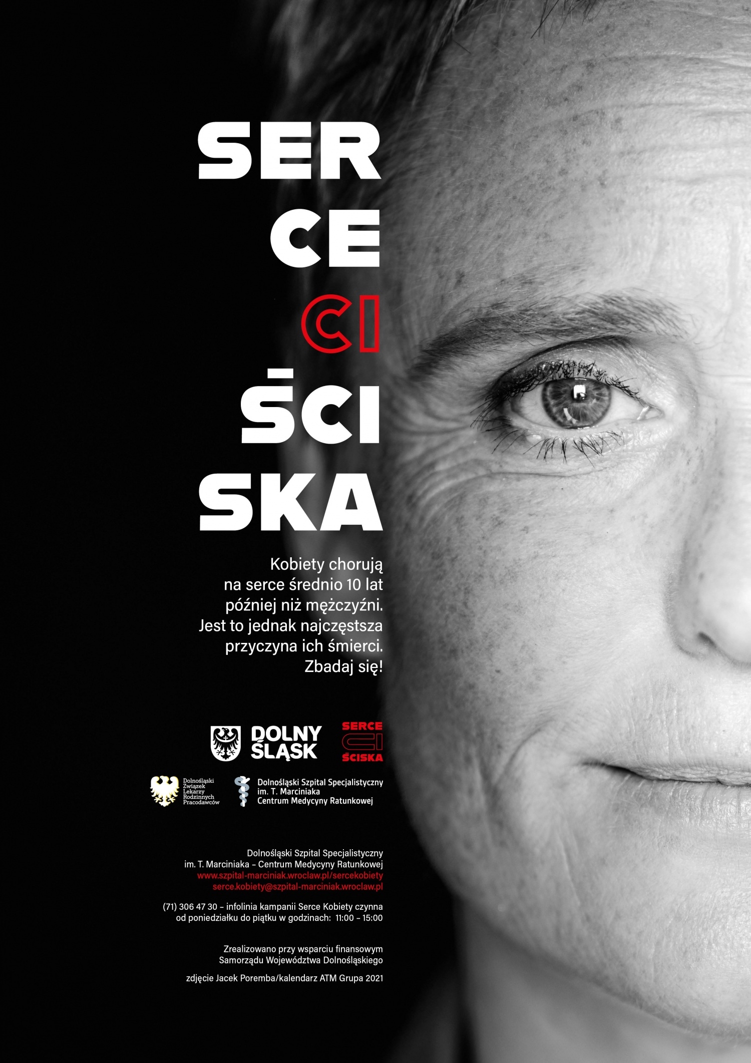W ramach kampanii „Serce kobiety" zachęcamy kobiety w wieku powyżej 55 lat do zgłoszenia się do lekarza rodzinnego w celu wczesnego uchwycenia czynników ryzyka miażdżycy oraz wykrycia pierwszych symptomów chorób układu krążenia. Liderem działań jest szpital im. Marciniaka. Kampania organizowana jest przy wsparciu Urzędu Marszałkowskiego Województwa Dolnośląskiego. Ambasadorką naszej akcji jest aktorka Kinga Preis.