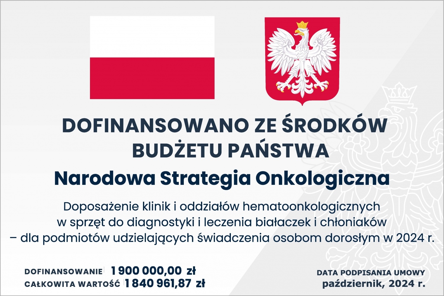 "Doposażenie klinik i oddziałów hematoonkologicznych w sprzęt do diagnostyki i leczenia białaczek i chłoniaków” – dla podmiotów udzielających świadczenia osobom dorosłym" w 2024 r.